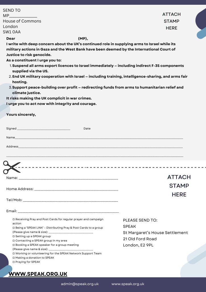 For some, this may mean daily fixed prayer. For others, weekly silence, lament psalms, or communal prayer vigils. Across the UK, groups connected to networks like SPEAK and our partners continue to model prayer that is politically awake and spiritually honest.