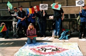 Partnering with other mainstream Charities and Organisations: SPEAK’s Campaign work has led it to work in close partnership with many other major organisations, such as Christian Aid, Oxfam, and Traidcraft, and has been recognised by other charities as being an interconnected and valuable partner in Campaigns. For example, SPEAK was campaigning alongside other ‘Anti-War’ Groups in Parliament Square against the invasion of Iraq.
